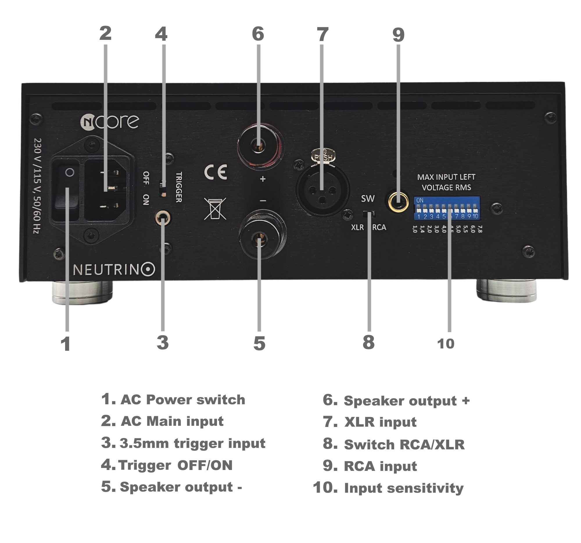 Trigger........... this means that there is 2-way switch on the rear panel close to 230V socket which select always on power supply or power on with trigger voltage of 5-12V from another source or preamplifier.