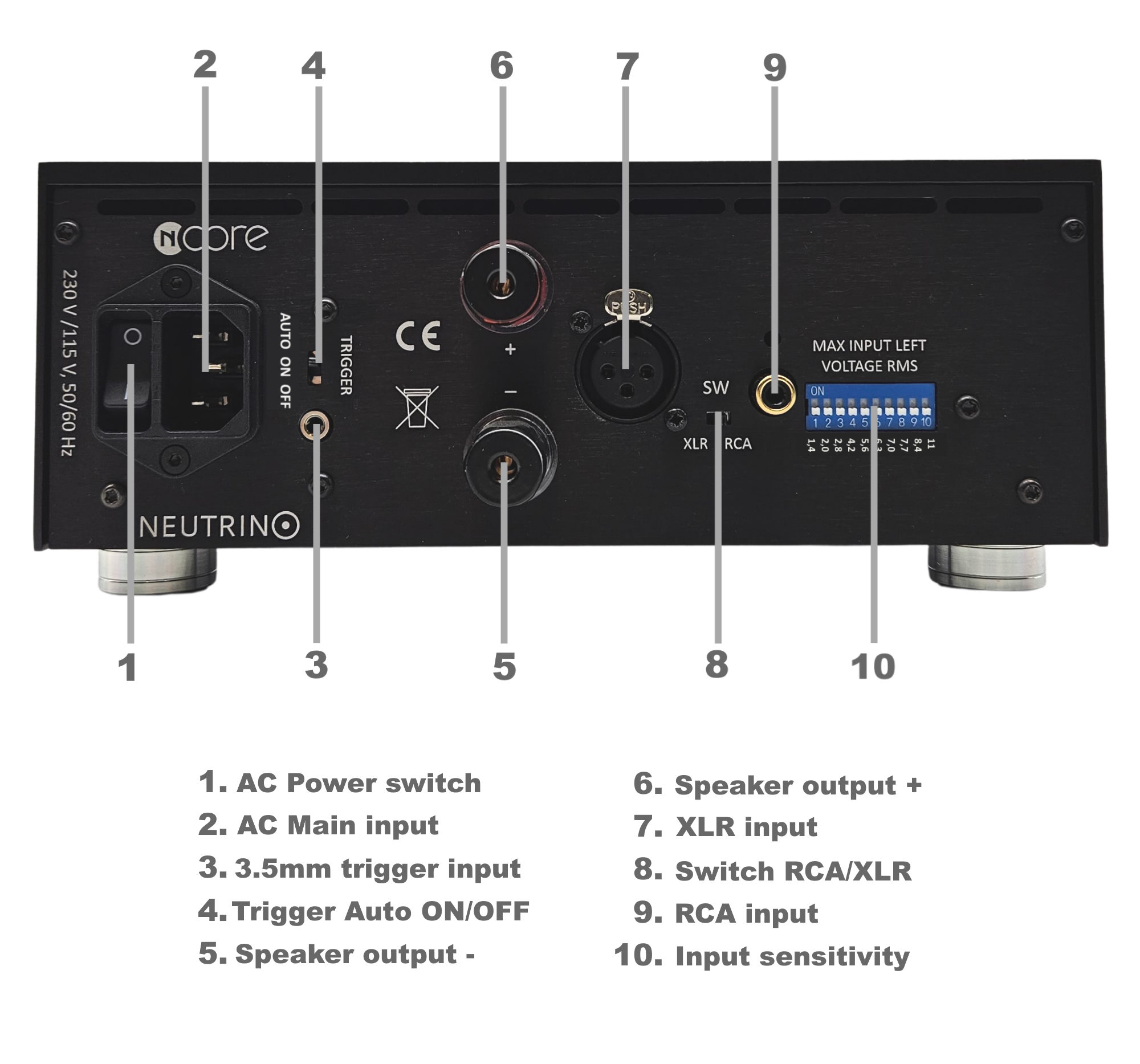 Trigger........... this means that there is 2-way switch on the rear panel close to 230V socket which select always on power supply or power on with trigger voltage of 5-12V from another source or preamplifier.